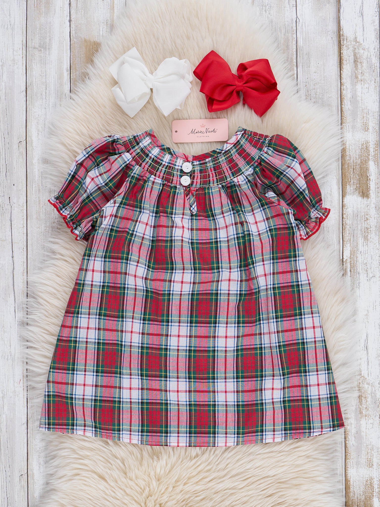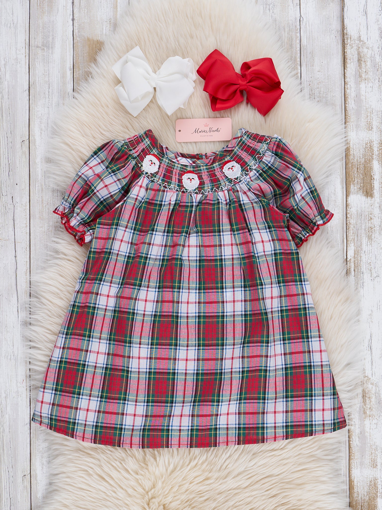 This swanky sibling set is for your little ones to show off their Christmas spirit in! Our vintage-inspired Christmas plaid patterned dress features a smocked neck, embroidered Santas, and puff sleeves. Fun and festive for the whole family!