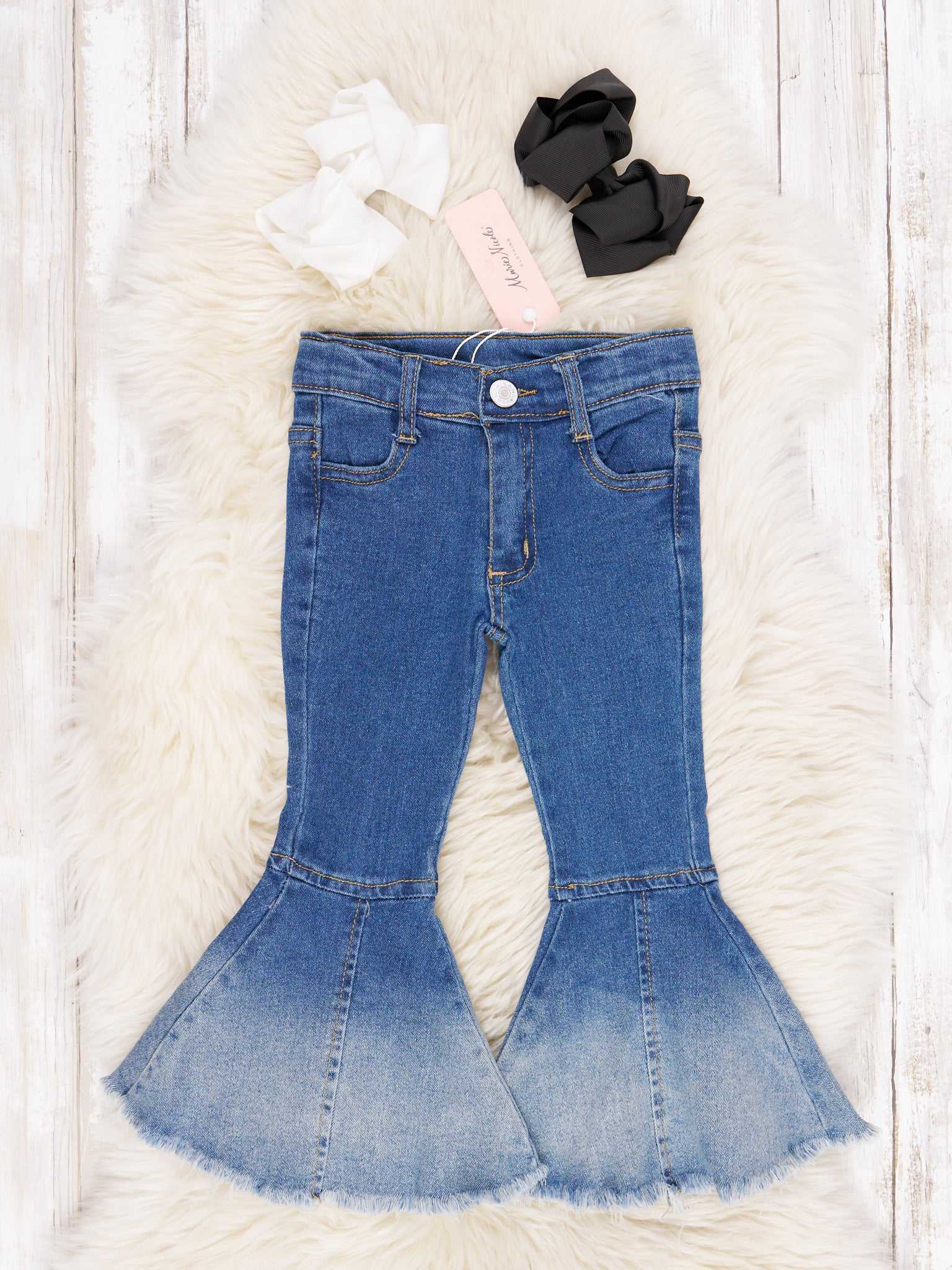 Let the world know you’re the bell(bottom) of the ball! Our Dark Wash Denim Bell Bottoms offers you an easy, eye-catching way to show off your style. With a classic dark wash and unmistakable flair, these jeans give you the perfect look to stand out and make a statement!