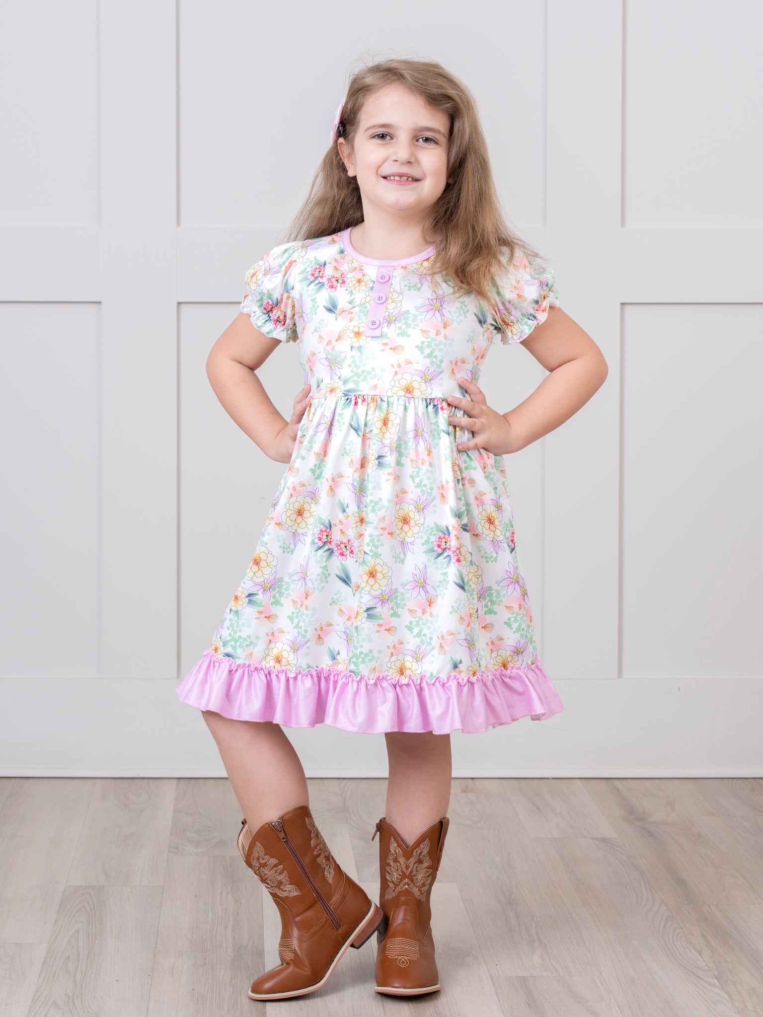We've found the perfect sister set for your precious girls! The Watercolor Marigold Ruffle Dress is a cheerful and festive look they'll love. Fluttery ruffles and a bright watercolor marigold pattern make this piece perfect.