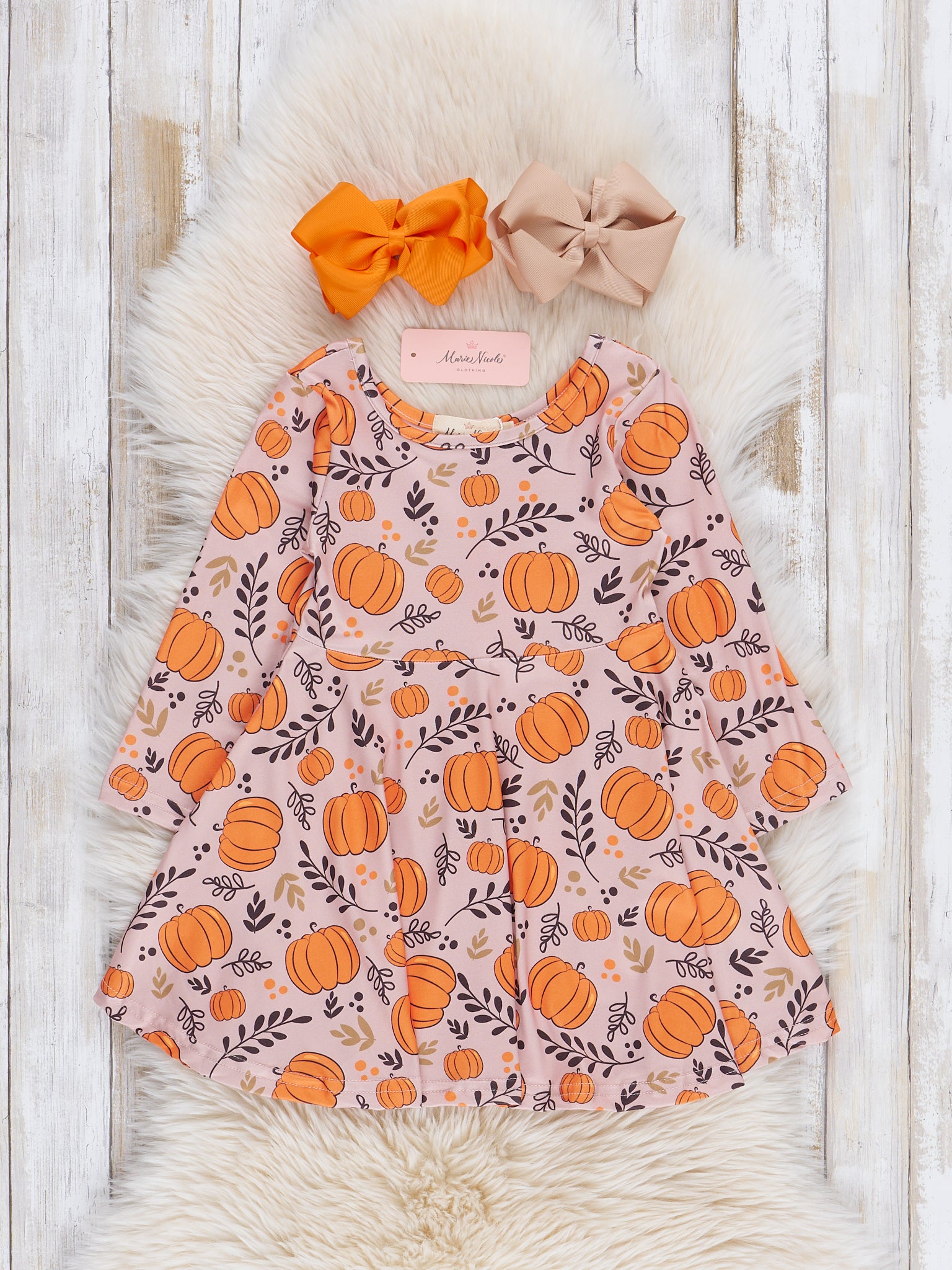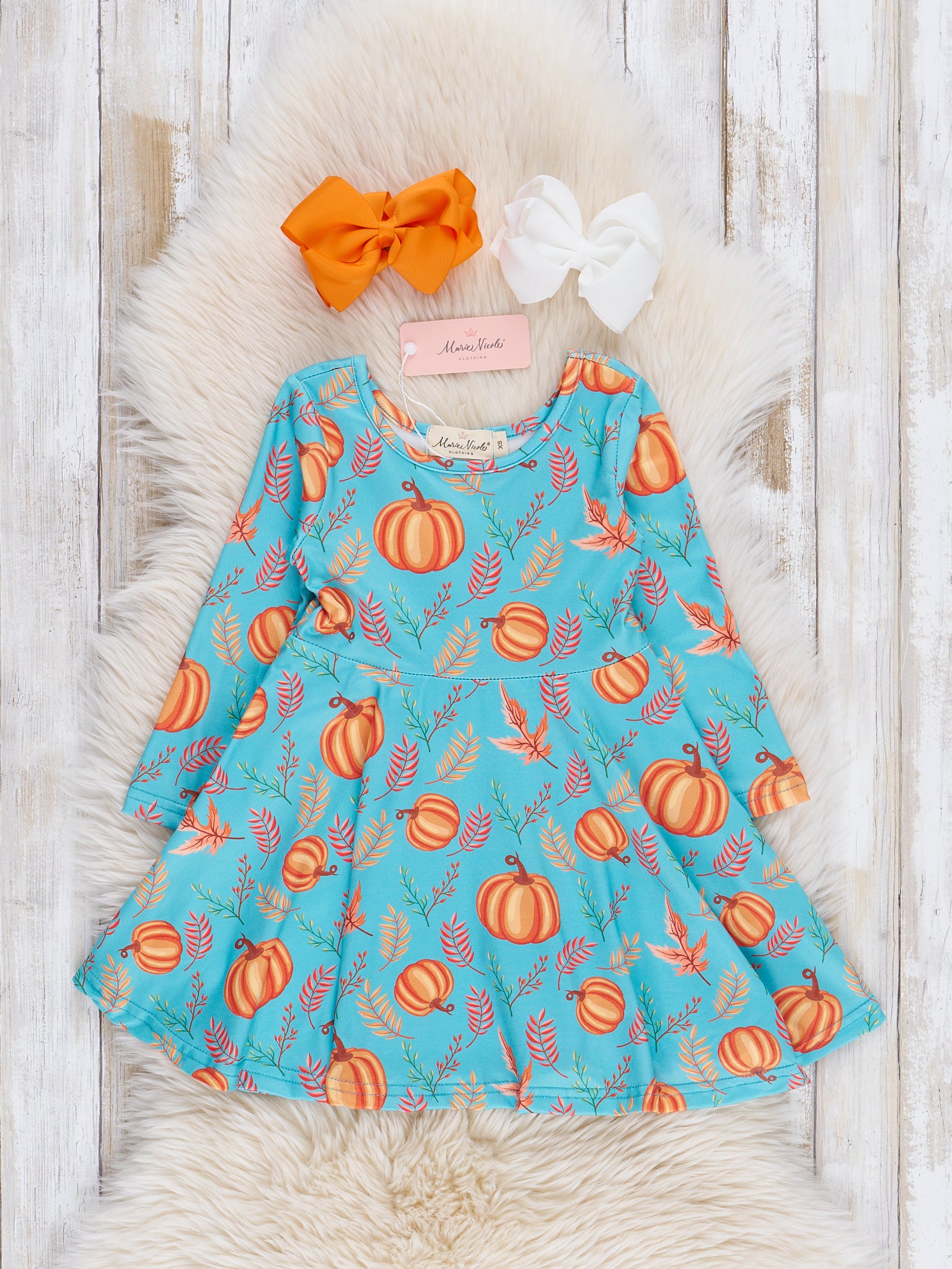 Get into the swing of pumpkin season with these colorful pumpkin dresses! The adorable swing dresses feature fun leaves & pumpkin patterns. Available in Teal and Tangerine.
