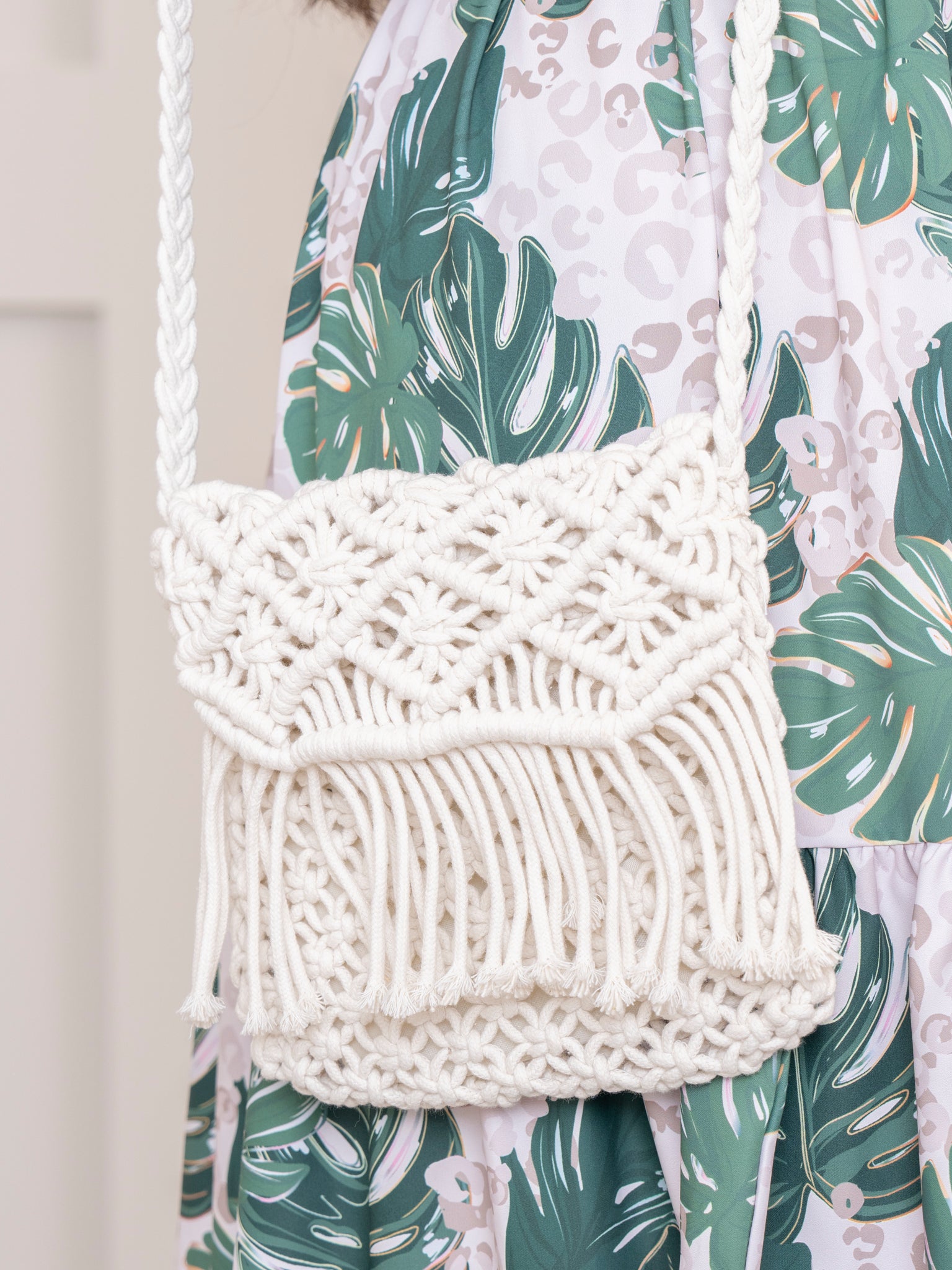 Add some extra style to your little girl's outfit with our White Fringe Woven Crossbody Purse! This cute and fun bag features delicate fringe details and is perfect for carrying all her essentials while keeping her hands free to play. A must-have accessory for any fashion-forward little one!