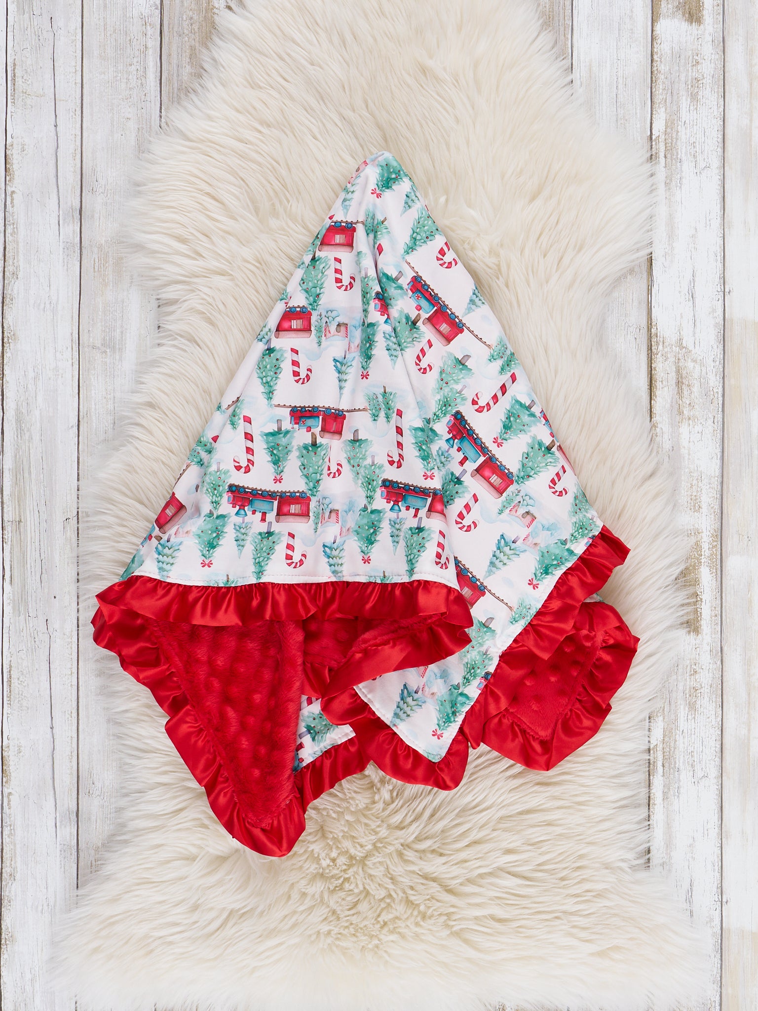 Winter Wonderland Train Ruffle Blanket