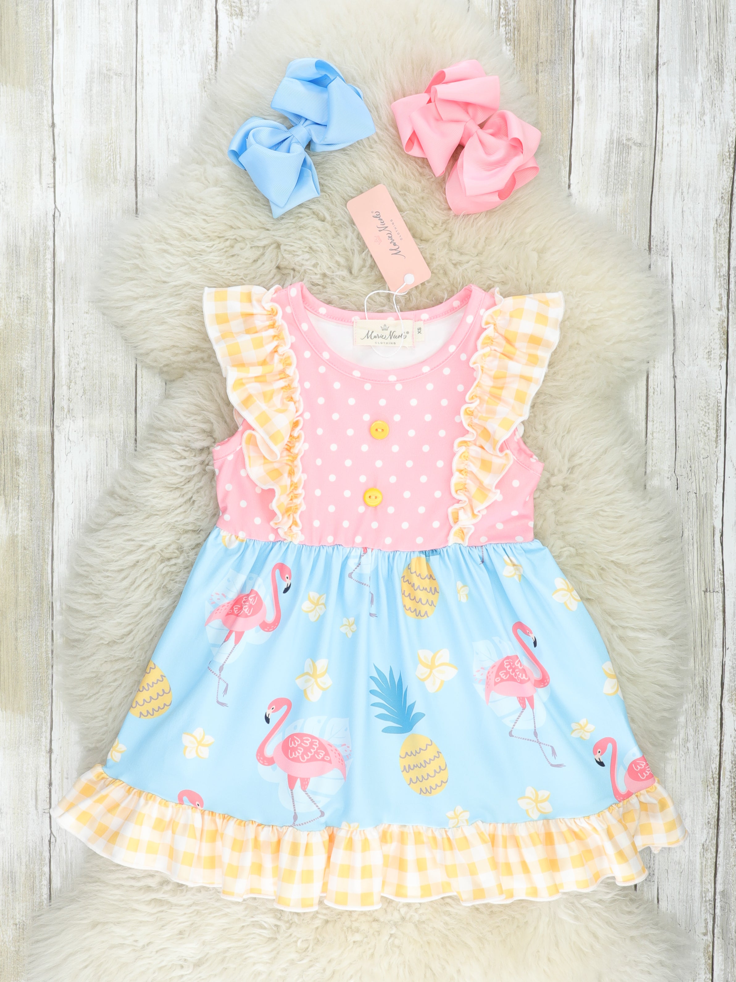Introducing the whimsical Yellow Gingham Flamingo Ruffle Dress – the perfect way to make your little ones stand out! Whether they wear it together as a sister set or on their own, they'll be rockin' the polka dots and yellow gingham with delightful flamingos. Plus, the frilly ruffle details will have everyone oohing and aahing!