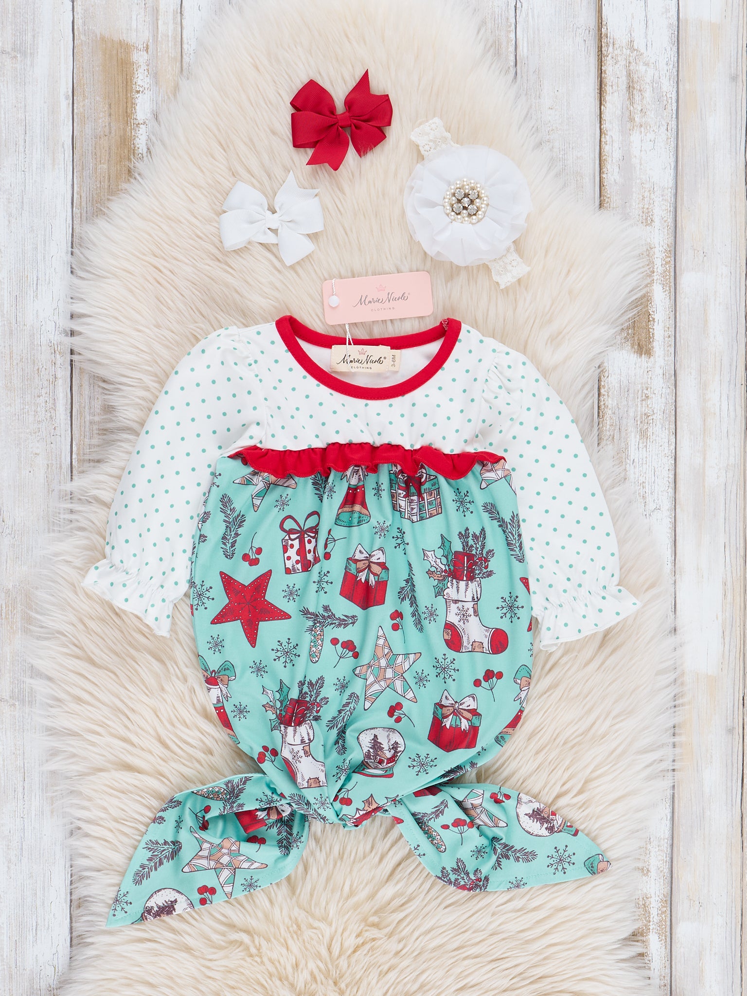 Teal & Red Gingham "Merry Christmas" Sister Set